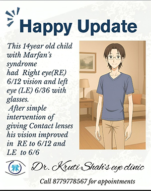 Dr. Kruti Shah is a very good ophthalmologist specializing in pediatric ophthalmology. It is difficult to treat vision problem in small kids who are not even familiar with alphabets. She is very patient with kids and deal in friendly manner. Right consultation from her is always assured. I take the opportunity to thank her for treating my daughter's vision problem.